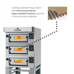 Forno de pizza elétrico DiamondForno de pizza elétrico Italforni Diamond é o primeiro forno que pode ser instalado no centro da sala (panorâmico 360°) agradável ao olhar e hiperfuncional para Pizzaria, Pastelaria e Padaria.